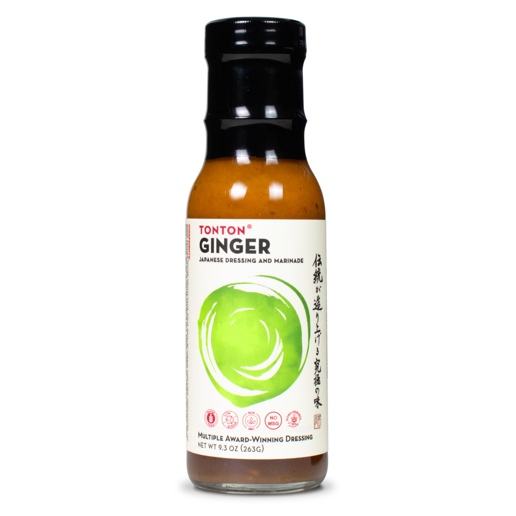 TonTon® Ginger Dressing is their best-seller. It delivers exactly the full-flavored taste you’d expect from this classic Japanese dressing. Smooth and thick in consistency from a base of fresh pureed onion and celery, it simultaneously brings out and mellows the prominent taste of fresh ginger. It’s a deliciously easy way to bring authentic Japanese flavor to just about anything you’re cooking.